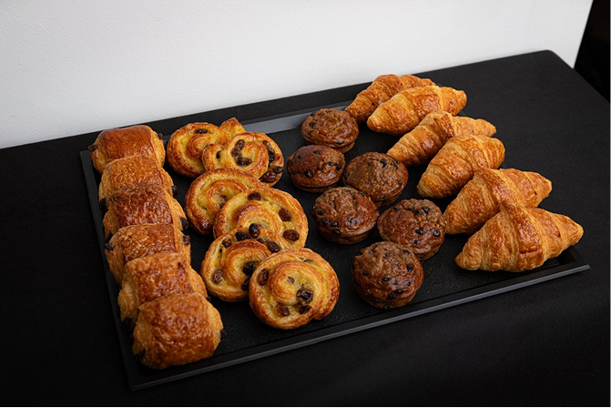 - Viennoiseries : mini pain choco, mini croissant, mini suisse choco, mini rond raisin et mini bananabread